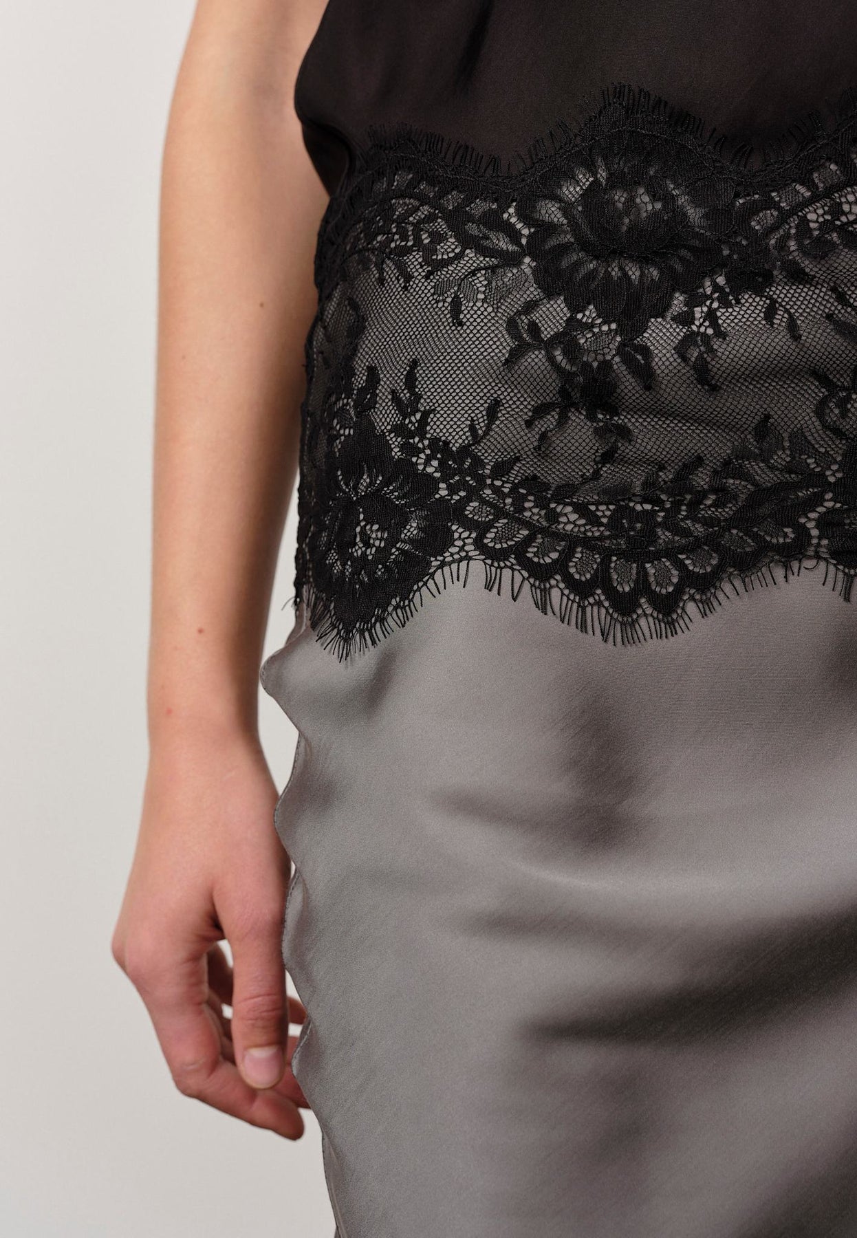 Fremstillet i en blanding af 50% FSC-certificeret viskose og 50% rayon, hvilket giver en blød, let og åndbar kvalitet. De smalle stropper og blondekant gør toppen til en alsidig favorit i garderoben.