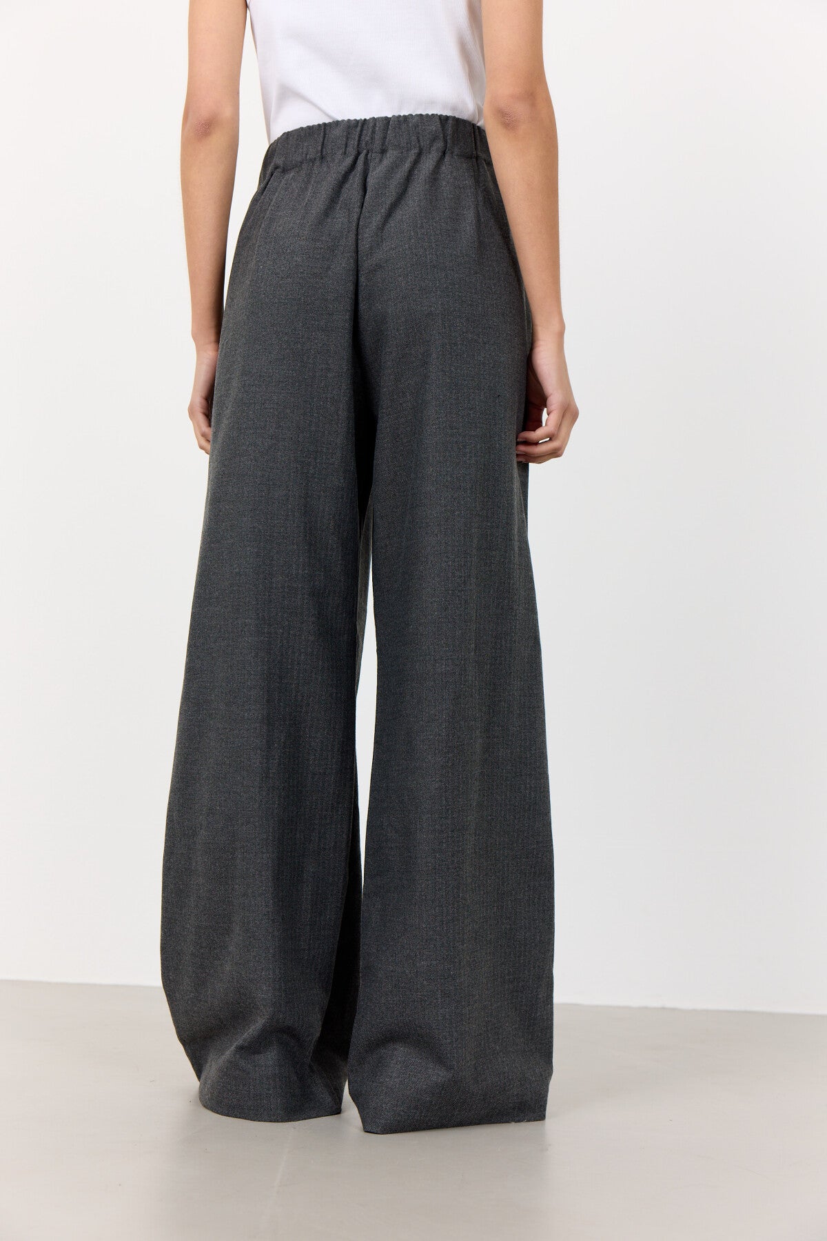 Levete Room LR-Norda 1 pants i mørkegrå med vidde i benene, elastik i taljen og lægdetaljer.