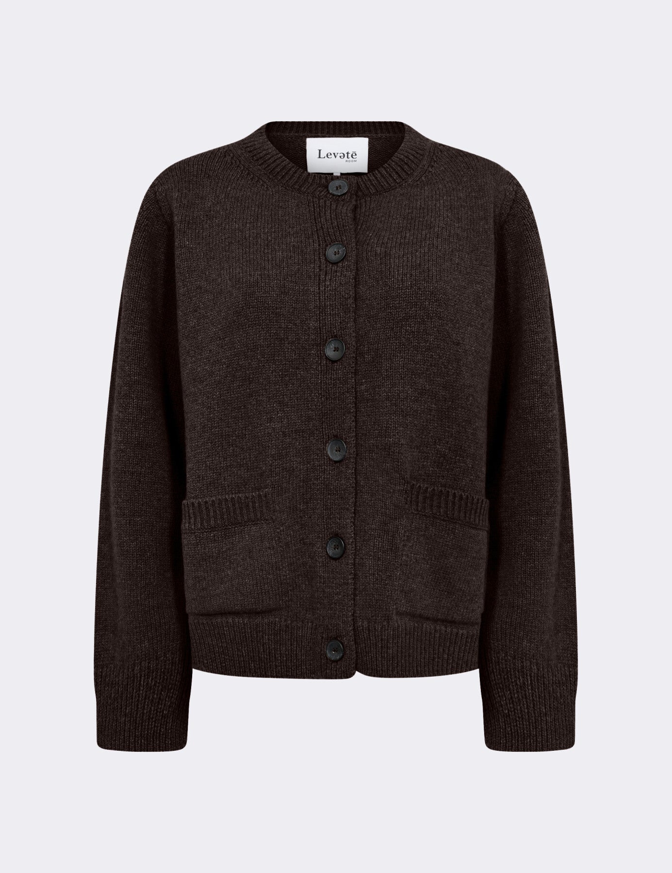 LR-Perle 9 cardiganen fra Levete Room er en eksklusiv strik, der er fremstillet af en luksuriøs blanding af merinould og cashmere. Den har en klassisk, rund hals og en knaplukning foran. Med sin tidløse farve og enkle design er den et alsidigt og raffineret item til din garderobe.