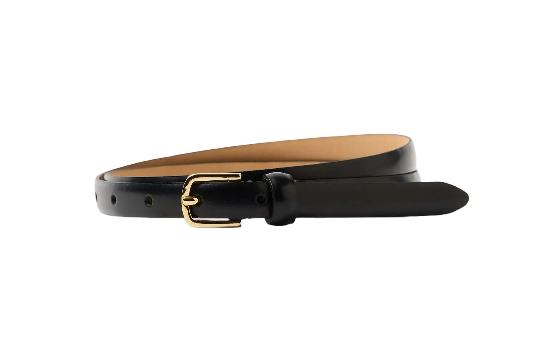 Fiona Leather Belt fra Selected Femme er et smalt og elegant læderbælte, der tilfører et stilrent og feminint udtryk til ethvert outfit. Det enkle design med afrundet spænde og en enkelt bælterem gør bæltet let at style både til hverdag og mere formelle looks.