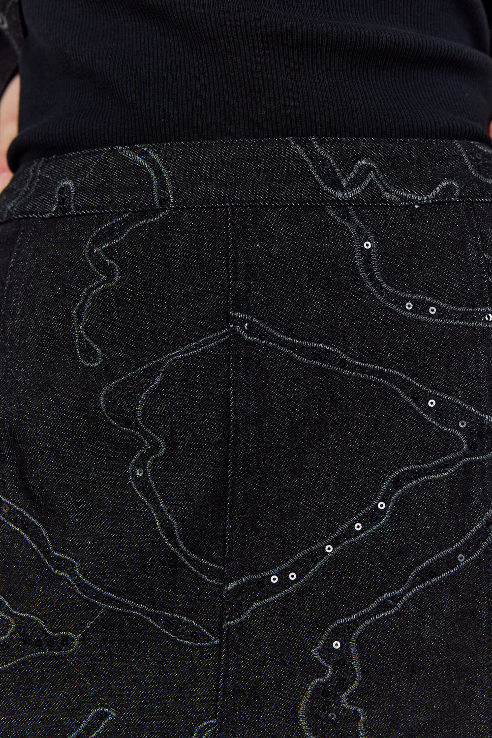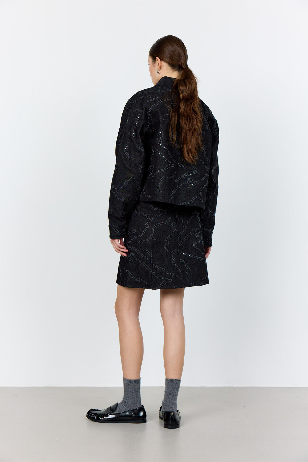 LR-Noma 1 nederdelen fra Levete Room er en elegant og tidløs nederdel i sort. Den er fremstillet af 90% bomuld og 10% polyester, som sikrer en behagelig pasform. Med et subtilt, abstrakt broderet mønster og en længde over knæet, er den perfekt til at tilføje et stilfuldt udtryk til din garderobe.