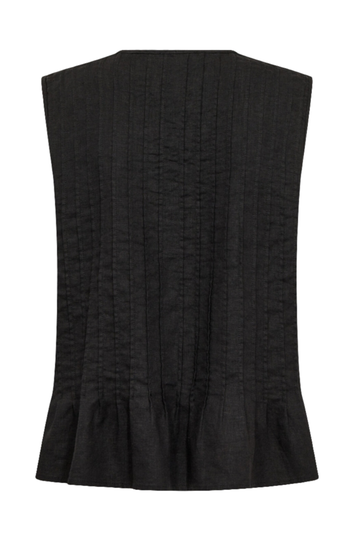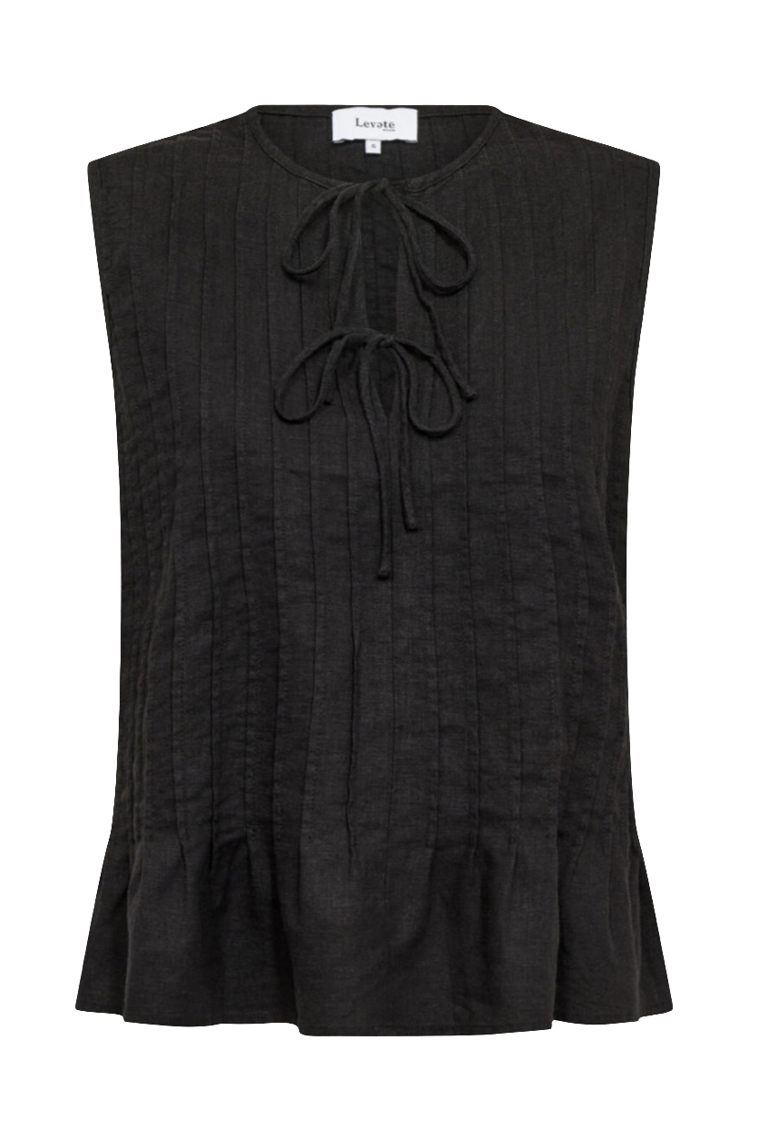 Leveté Room LR-Naja 49 Top – Sort Hør/Viskose Top med Bindelukning og Stribet Struktur