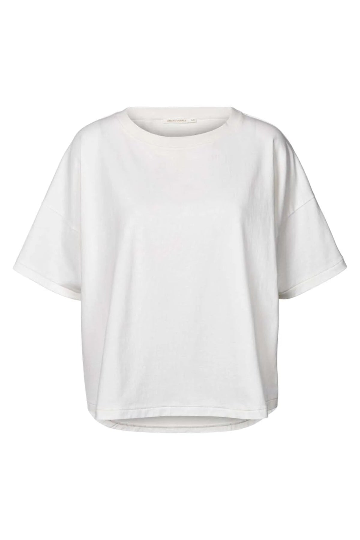 Rabens Saloner Margot Cropped T-shirt i white – oversized t-shirt i økologisk bomuld med rund hals og cropped længde.