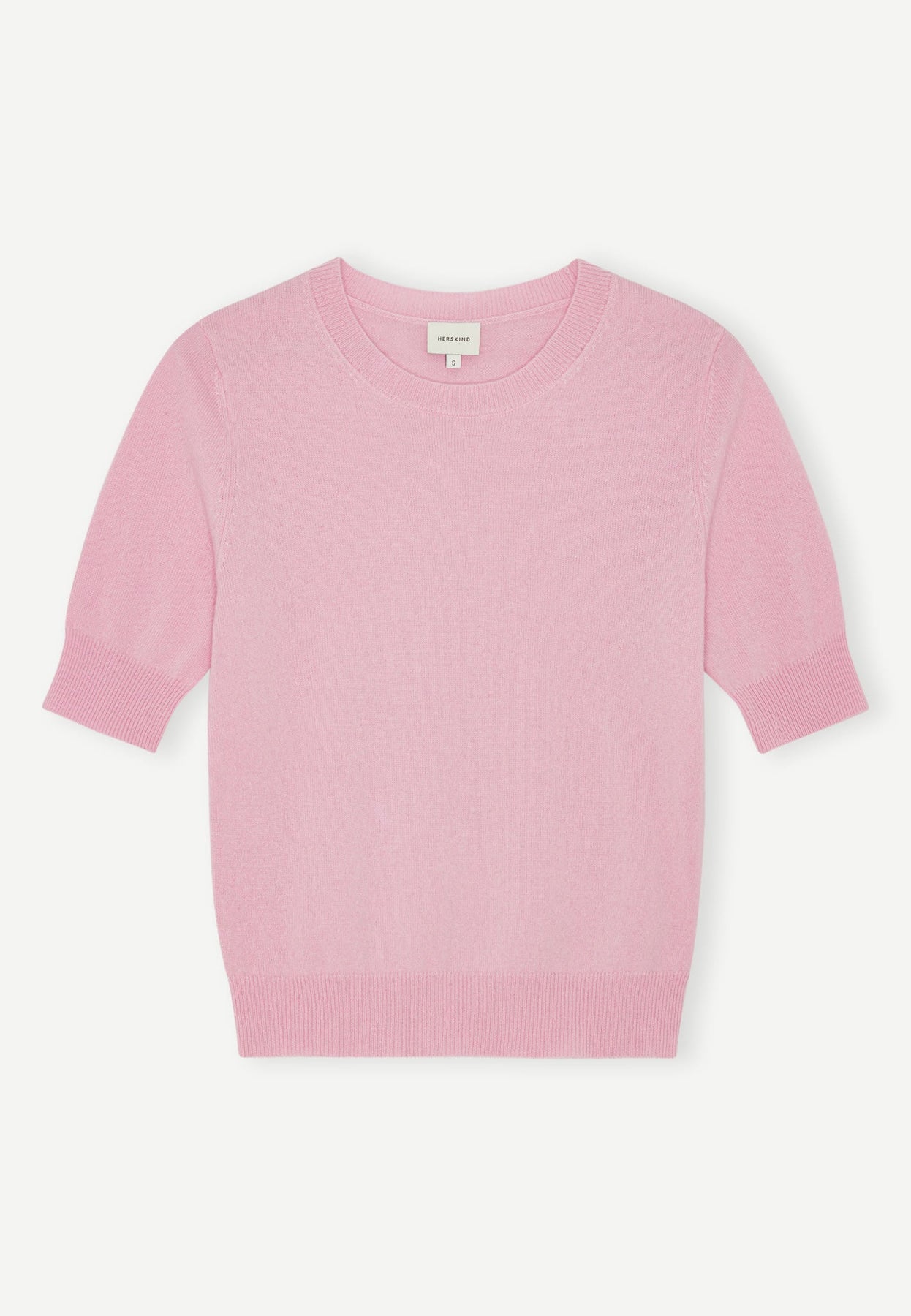 Herskind Therese Knit Blouse i Bubblegum – kortærmet cashmerebluse med rund hals og taljelængde.
