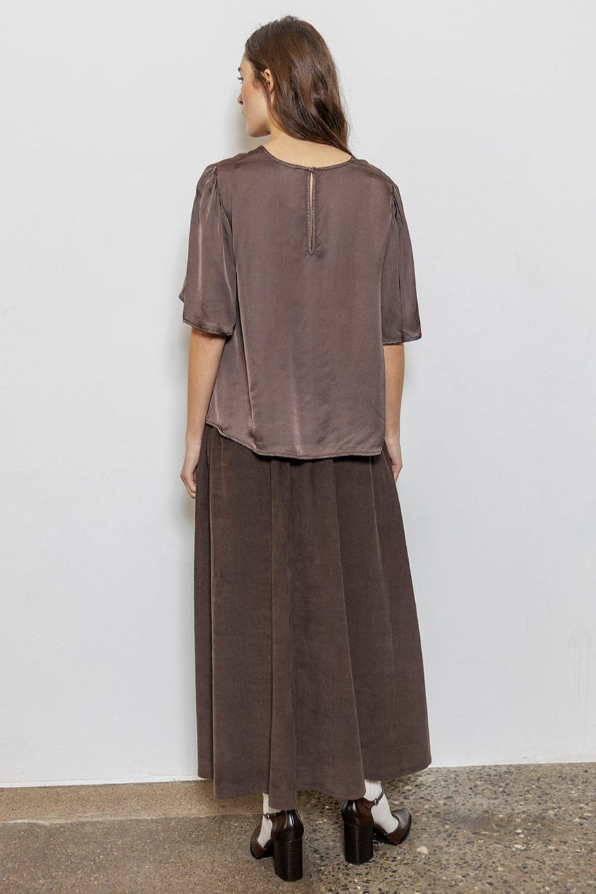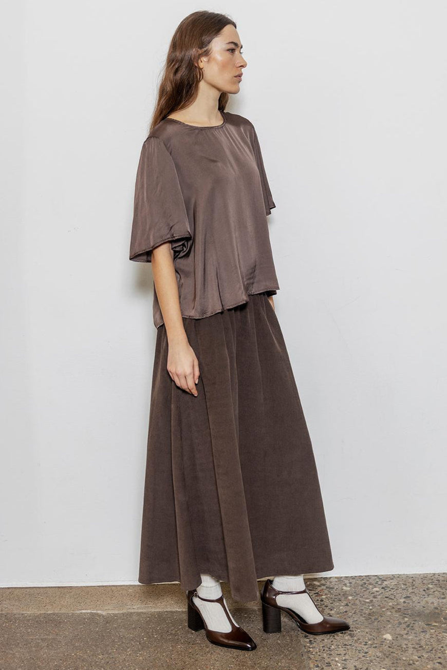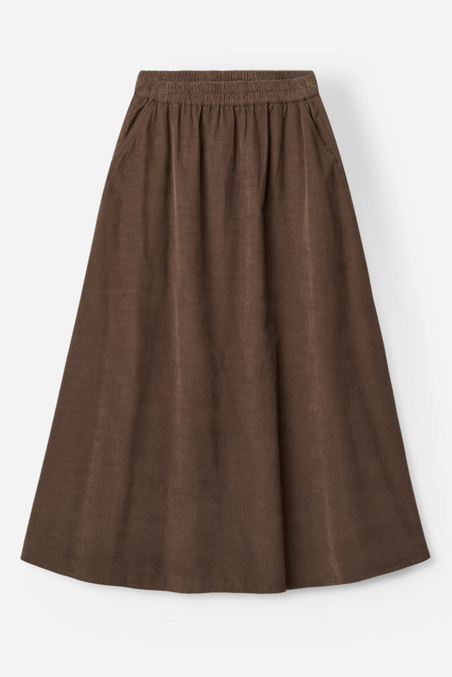 Hailey Nederdelen fra Project AJ117 er en midi-længde nederdel fremstillet i blød baby-corduroy, der kombinerer komfort med et klassisk, afslappet look. Nederdelen har en behagelig elastik i taljen og to skrå frontlommer, hvilket giver både funktionalitet og stil.
