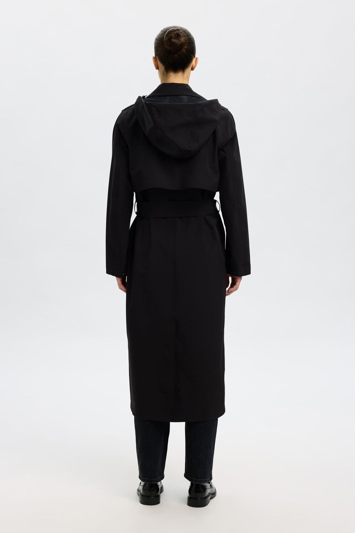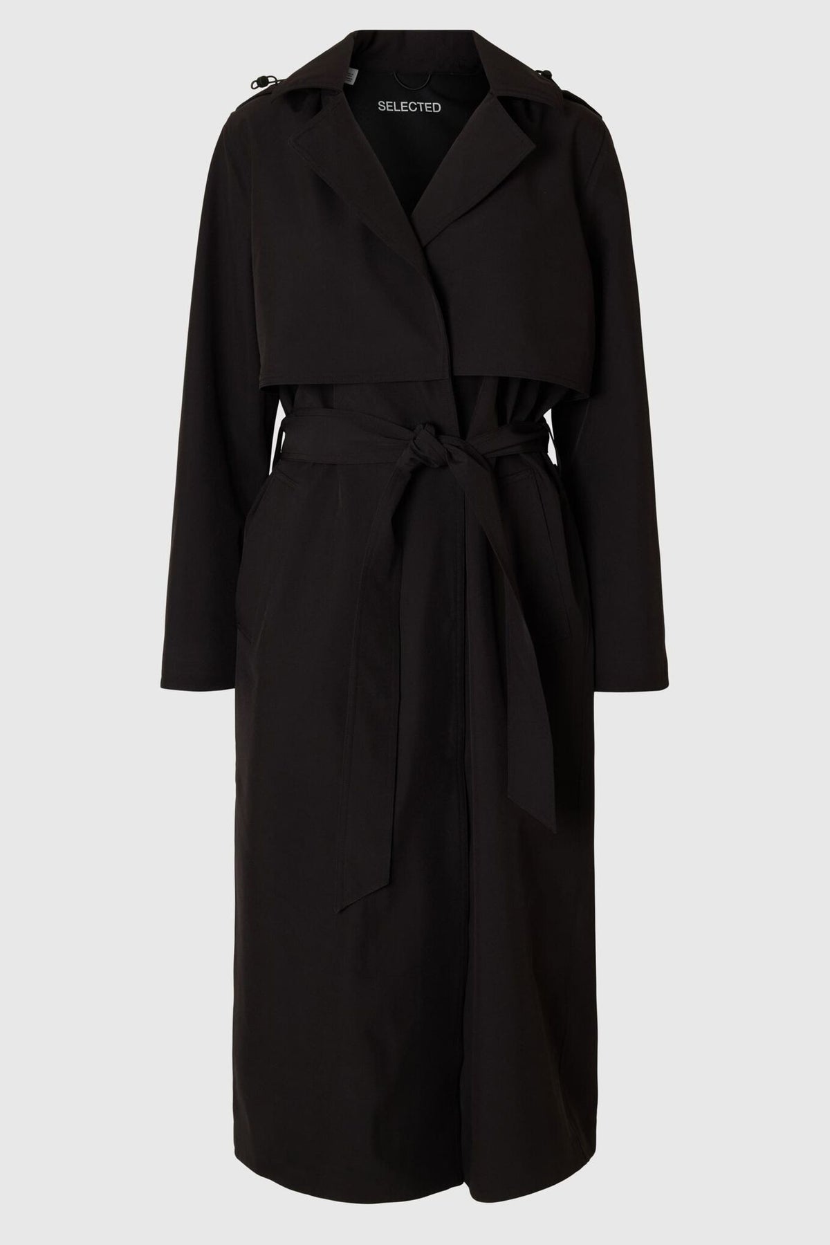 Selected Femme Teknisk Trenchcoat er en moderne og stilfuld trenchcoat, der er skabt med et skandinavisk håndværk. Jakken er behandlet med **Bionic Finish Eco**, hvilket gør den let og vejrbestandig. Den elegante, dobbeltknapning og det minimalistiske design gør den til et alsidigt og tidløst item, der er perfekt til alle sæsoner.