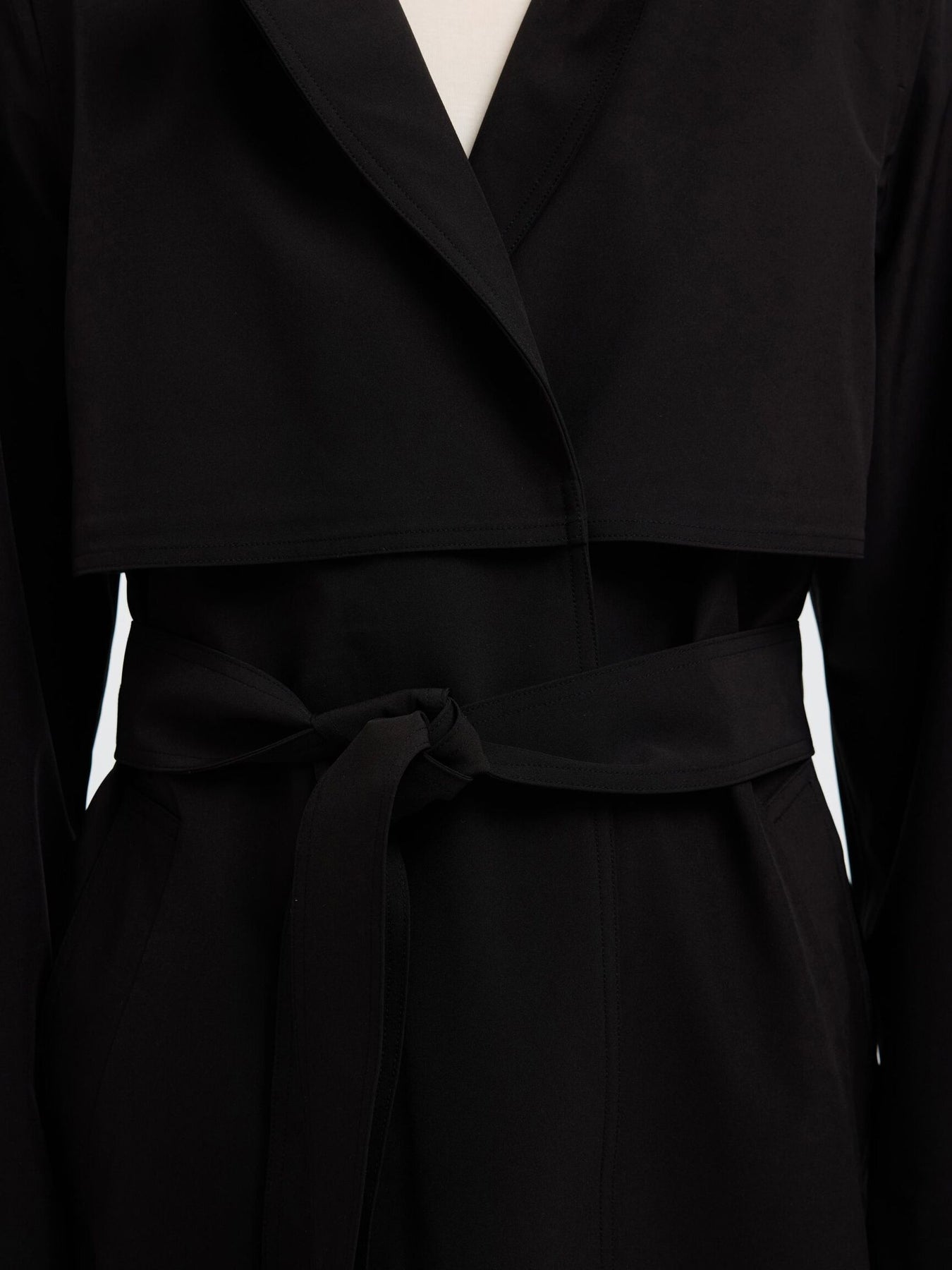 Design: Dobbeltknapning, bindebælte, stormklapper