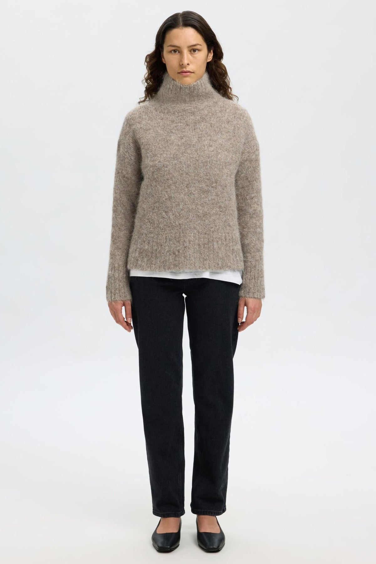 Selected Femme Gabriella LS Knit High Neck – Steel Grey Melange