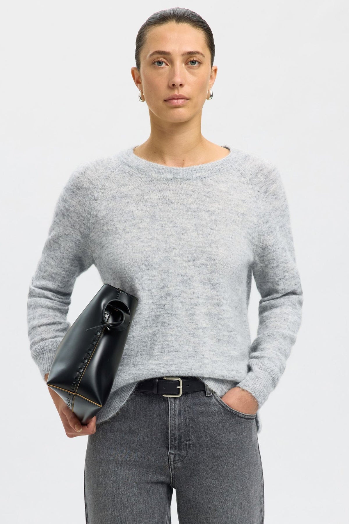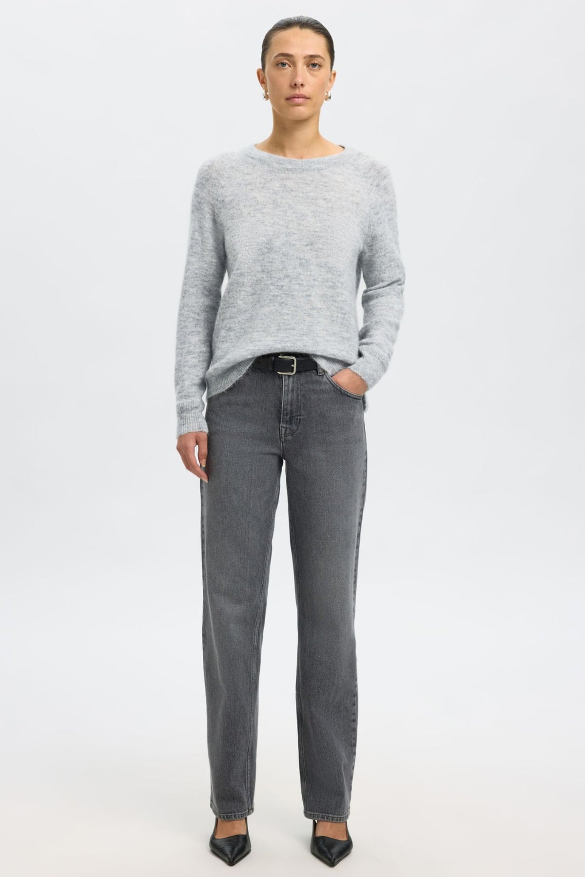 Selected Femme Lulu LS Knit O-Neck – light grey melange
