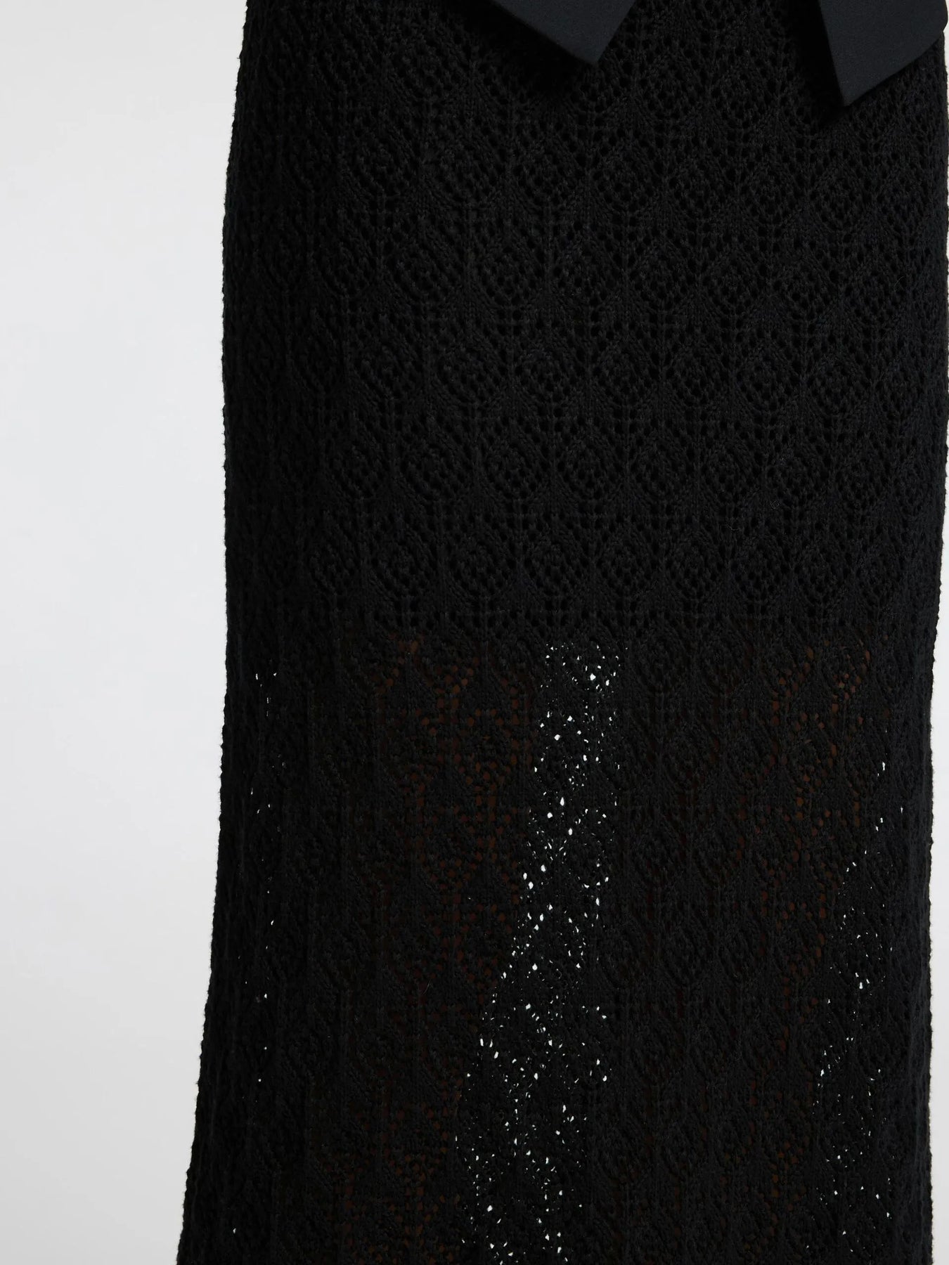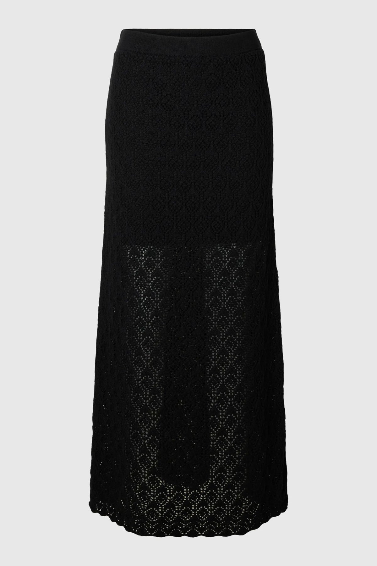 Niva HW Knit Skirt fra Selected Femme er en strikket maxinederdel, der kombinerer moderne stil med vintage-inspireret design. Den har et flot hæklet mønster og er delvist foret, hvilket giver et let og cool udtryk, perfekt til både hverdag og festlige lejligheder.