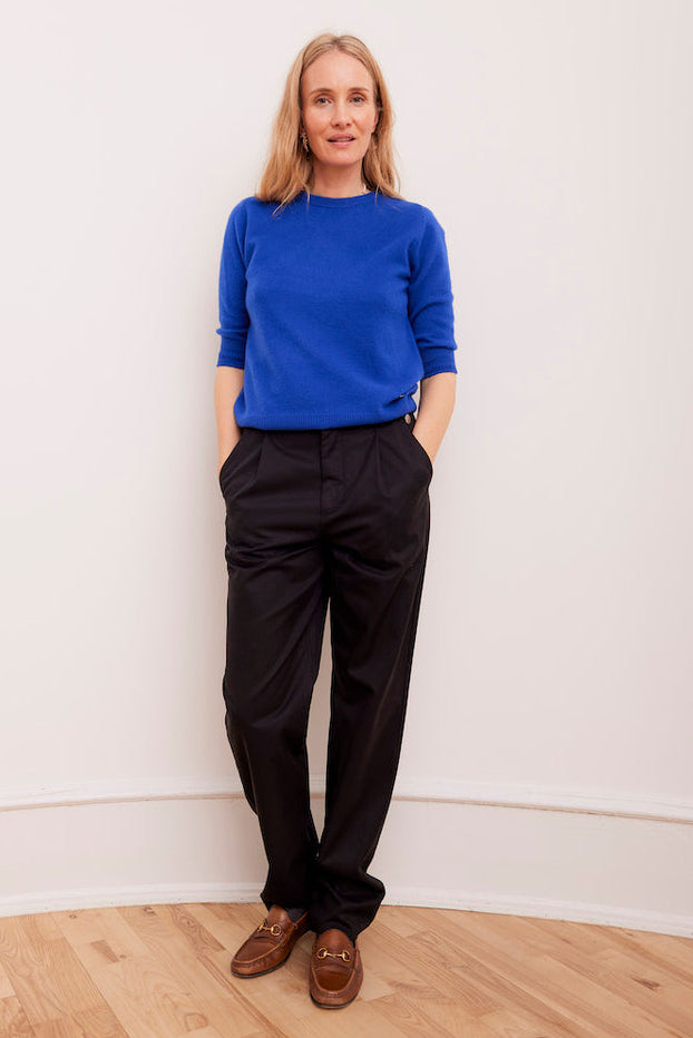 Bukserne er designet med fokus på både stil og funktionalitet, med læg, bæltestropper, to forlommer og to diskrete baglommer. Den sorte farve gør dem utroligt alsidige og nemme at style til både formelle og afslappede anledninger. Ved at vælge Leah Pant investerer du i en tidløs klassiker, der ikke kun er stilfuld, men også et bæredygtigt valg for din garderobe.